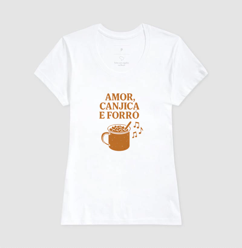 🪗 Estampa com sotaque de festa: Tipografia charmosa e estilo despojado pra quem vive a temporada junina o ano inteiro.