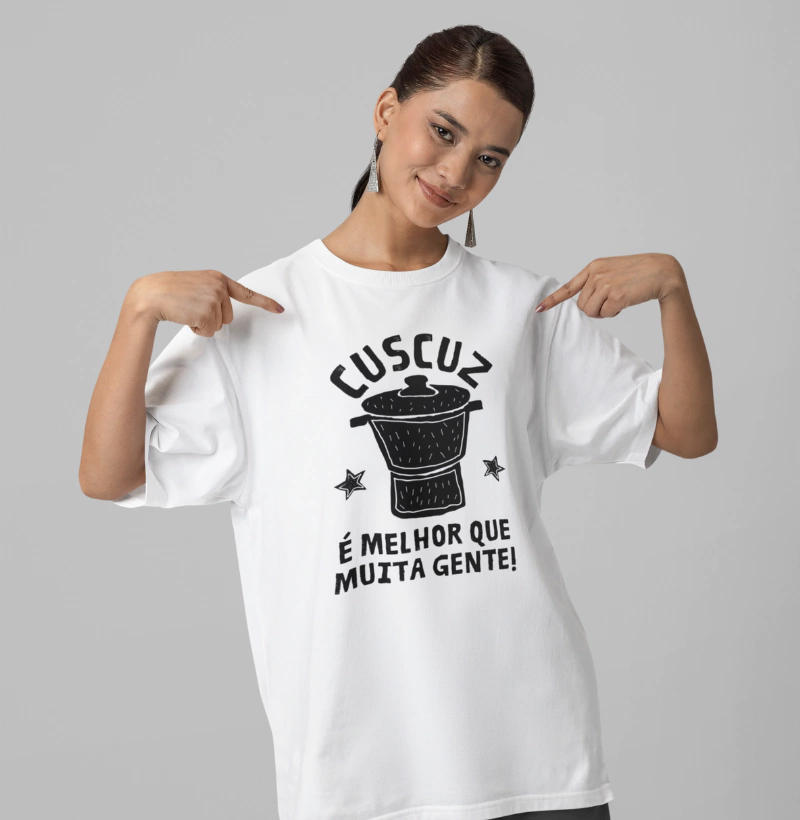 A Camiseta Cuscuz é Melhor que Muita Gente! é perfeita pra quem leva o café da manhã a sério e sabe que o cuscuz é patrimônio afetivo e cultural do Brasil.
