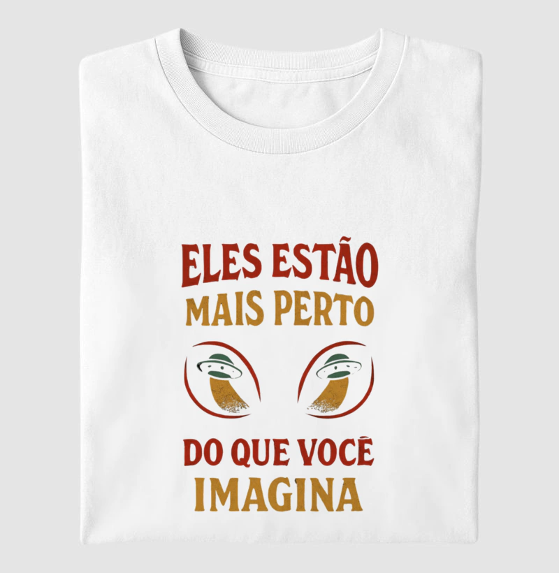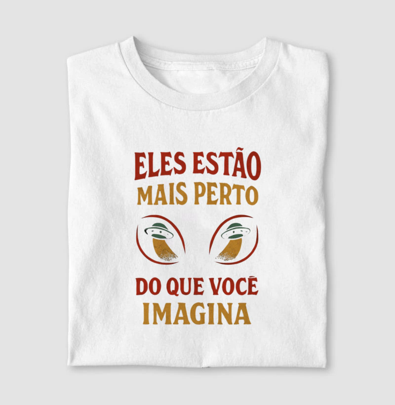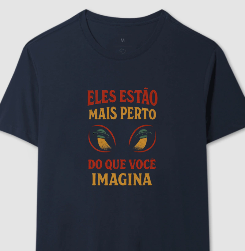 Se você desconfia dos barulhos no céu, dos sinais estranhos no Wi-Fi ou do comportamento suspeito do seu gato às 3h da manhã… essa camiseta é pra você. Um convite (ou aviso?) pra quem anda de olhos bem abertos e cabeça nas estrelas.