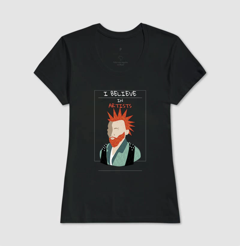 Em um mundo que nem sempre valoriza a criatividade, essa camiseta é um manifesto. A "I Believe In Artists" declara, com orgulho, que você acredita no poder transformador da arte, nos criadores de beleza, de emoção, de revolução.