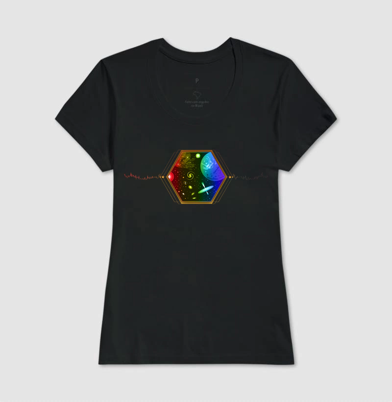 Inspirada nas imagens captadas pelo Telescópio Espacial James Webb, essa camiseta científica e estilosa traduz o fascínio pelo universo em forma de arte cósmica no peito.